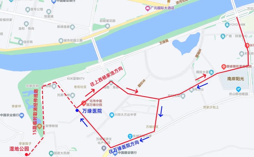 調整后:濕地公園終點站臨時調整至萬緣醫(yī)院公交站點。