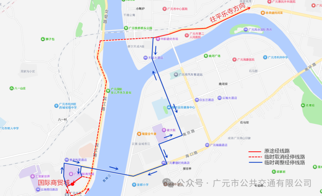 調(diào)整后經(jīng)停站點(diǎn):途經(jīng)供排水公司、南河汽車站(西)、南河體育場(chǎng)、玉樹(shù)家園、皇都首座國(guó)際商貿(mào)城